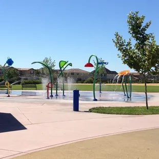 I very well laid out park in Woodland. Only a few years old, this park provides a variety of play structures, water spray park, and party pads. Well maintained restrooms and ample street parking. Aside from very small trees thus just a little shade, it's a great park. The small trees also provide no wind screen from the north winds.