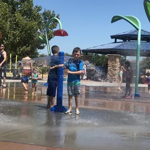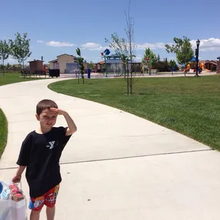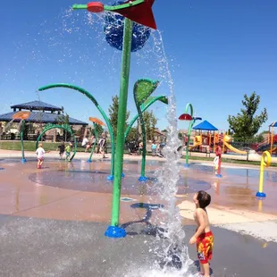 I have two boys four-year-old, and two-year-old. This park is amazing for all ages. They have an outstanding spray ground. It's basically a park that shoots water. It's super cute, looks like large flowers maybe, and a few other things that spray water . The boys said they feel like bugs running around in the water. You know like that movie a bugs life. A wonderful place to go let the kids run their energy out, and cool off in the water. Large grassy area we like to fly kites, and have picnics. Some days get super crowded. They have a few gazebos with picnic tables and barbecues, they tend to be reserved for a party every time we go . Most people don't stay too long because there's absolutely no shade! For that reason I'm only giving four stars. It's a fairly new park and I do see trees planted however it's going to take a few years for them to give shade. I recommend bringing a blankets for the grass, a few chairs to sit on, and an umbrella or something for shade . It's also a great place to ride bikes, or go for a jog. There's a trail that circles the entire park.