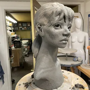 Create a human bust in water base clay over a three session, 20-hour workshop.
