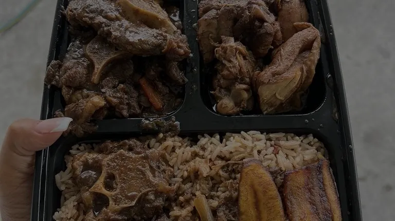 Cow Foot is slow cooked for serval hours,then cooked down with butter bean, authentic seasons, herbs and spices. Served w rice and peas, veggies and a slice of plantain.