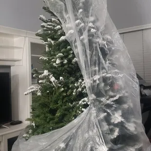 I purchased a tree from your Elk Grove lot. I paid 400.00 for my tree. It was flocked on the tips. When I purchased the tree I told them I lived in Stockton and that the tree would be put on the top of my Suburban. I was told not a problem we will wrap it and tie it and nothing would happen to it and that it would make it just fine. I asked several times and got the same answer. This is my tree it was not fine and did not make it home as promised...it is ruined...the flock has fallen off as the bag was not tied down well. The needles fell off too as it rubbed against the rope that was not tied down properly. The rope even frayed as it was rubbing on the tree. This is not right....had they tied it properly my tree would of made it home and I would not be out 400.00. I have purchased from you before and ever nothing like this....