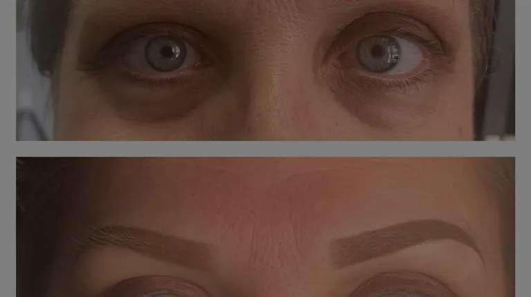 From top to bottom: clients make up, no make up, after ombré brow tattoo