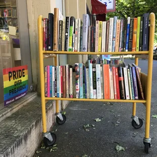 I always get a friendly hello when I walk in... even though the folks don't know me. The collection of queer lit is off the hook. THIS PLACE IS A GEM! Support it.Volunteer run. Generous sharing of space. Tables for studying.Info boards and shelves with local queer organization/resource pamphlets.Dollar book rack. Porn for lend.You donate for a year's worth of lending privilege. So worth it.