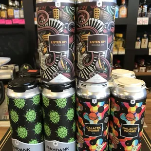 a variety of cans of beer