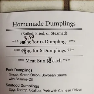 Current menu, disregard the pricing it doesn't seem to match up to whatever is printed
