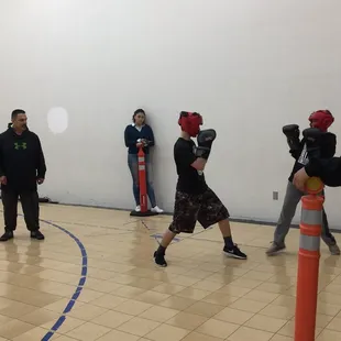 Young adults boxing