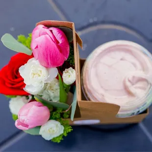 Went by on Valentines for the special strawberry matcha and got a super cute flower coffee carrier basket too! The drink was delicious and had to get a forgotten bakery bagel of course hehe!
