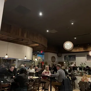 Be aware of closing time! They close at 8:30 on a Friday night. We arrived around 7PM as a group of four. We sat in the bar and had intended on catching up over an endless rotation of apps and drinks. At about 8, staff started putting chairs on tables that had cleared. By 8:15 we got the hint and asked for our bill. We were out the door by 8:30.I love this great suburban restaurant and am really proud to have this establishment in our neighborhood! I just wish it stayed open until 10PM on a Friday night. We ordered calamari, wings and truffle fries to share. All delicious! The guys ordered beers from the tap and the gals had a few Aperol Spritzes, which were made to perfection! I love supporting this wonderful local business. Great atmosphere. Delicious food. Almost always a guarantee to run into a neighbor. The wine shop is great too!