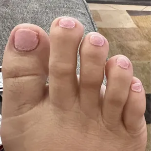 Uneven cut on the big toe and clumping polish