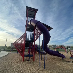 Every time we come to get a bite to eat at Kitchen 745 the kids could see this cool park by the distance lol ! They always ask can we go ? So this time after dinner we took them . They are in heaven right now playing with the kids they met at Kitchen 747 . The slide is super tall they love it ! They said the slide is so much fun ! They have bathrooms on site . They have picnic tables and a large grass area . The main attraction is the big slide looks pretty cool and fun ! My kids said it felt like a water slide with out the water .. We will definitely be dropping by again next time we are in the area !