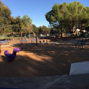 Great play structures. No on-site parking. Only street parking. Lots of grass to run on.
