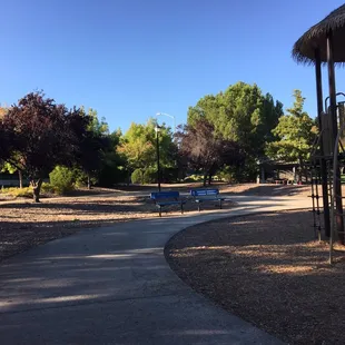 Dinosaur Park. This is such a fun park that sparks a lot of imagination. In general, you can find a good shaded area to sit. There are plenty of benches. The bathrooms are close. It's a great park to go on a walk before you play, as there is sidewalk all around the park/school. The only caveat is that you may not want to bring your toddlers here (if they are you oldest or only ones). The park has some high slides with these steps that seem pretty easy to fall through for little kids. I've had to do some rescuing when my kids climbed high but got scared and stuck. With that being said, it's still a very fun park for littles, you just may want to keep them off the tall slide.