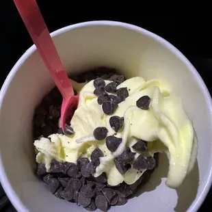 I yelped "vegan dessert" in the area and this spot came up. They only had 1 vegan option tonight but according to staff they usually have at least 2. I got the pineapple dole whip with carob chips and it was a nice treat. The staff there were really friendly and greeted us the minute we walked in.