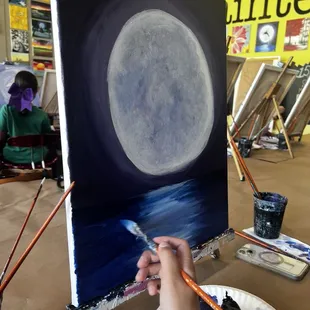 I have taken my 8 year old son to several classes. The teacher has been so encouraging and positive! My son had a high interest in art and painting, and the teachers here have taught him so much through their guided paintings. His confidence has improved in himself having had the experience of painting. I'm always so impressed with how the teachers are able to offer anyone who needs personal assistance with guidance and encouragement. I highly recommend this studio!