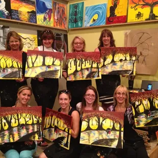 My group and I had a great time! Myself and my friend arrived early, and checked everyone in. We had brought two bottles of champagne with us, and come to find out that there is a 12$ corking fee PER bottle. We thought that was a bit ridiculous so we only used one of our bottles. Luckily the person who was working the building and running the class was extremely nice and friendly. She kept our unused bottle in the fridge for us, and was such a great multitasker. So many people had come in and out during the class and she was quick to set us up with a class then go and take care of the customers. Painted has a special going on for a when you buy a 100$ gift card, you get a free class! Which is rad, although we don't live around here we had such a blast. I love that you can do things different and you don't have to go exactly like the artist instructing the class. Would definitely recommend trying a painting and drinking class!