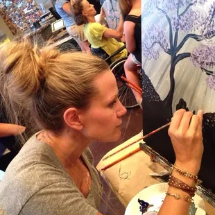 Be creARTive...While strolling at the Palladio waiting for the Wednesday outdoor concert to start at 7:00p we came across by Painted Studios and decided to walk in to check out the scene. It was empty at the time but there was a class scheduled that day at 6:00p. My teen enjoys art so we inquired about classes. Many of the class times were early so couldn't make those but daughter found a time slot that would work for my schedule and, also, she liked the artwork painting for that day - Cherry Blossoms.Fast forward to 3 weeks later and we made it just in time before the class began. It was a small class so my daughter felt like she had a private art lesson. The class was about two hours long and art instructor, Michelle, was friendly and great. Students were allowed to bring snacks and they can purchase drinks from inside as well. Teen enjoyed the experience and she had a great time. Thanks, Michelle!The studio is a few doors down from H&M clothing store and is just across the street from the piazza. The studio also sells some of the completed art pieces and some clothing as well. Art classes are $35 a session.Review #1130