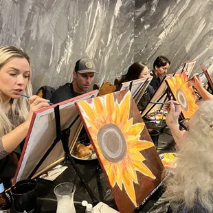 Had so much fun with Lizzy! Family Sip and Paint September 2023. Did sunflowers and it was so cool seeing the difference in everyone's paintings