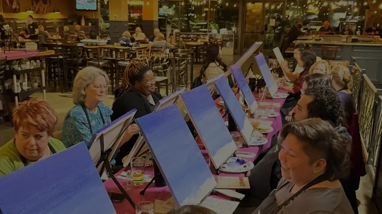 Enjoy a paint and sip painting party at your own home. Visit paintingandvino.com/private-events/ for more information or to request a quote