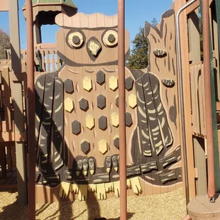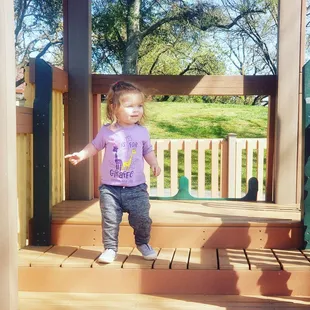 This is a darling playground made of wood with several towers, slides, and even a wooden boat. There are several features for smaller kids, but this playground is geared for kids who can climb and use monkey bars. We has fun playing here. The kid I was with loved the swing and the moving bridges and platforms.