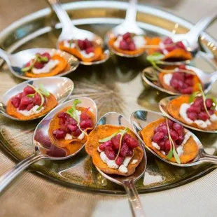 We had some amazing catering from Randy Peters for an evening social event at work. They came with some amazing appetizers including stuffed mushrooms and bruschetta, along with a small bar of wine and drinks. The staff were amazing - they have these hot stone plates that keep all the food warm, and each station was constantly being refilled. The entire set up was beautifully done.