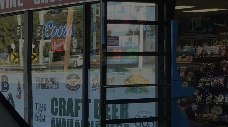 the front of a liquor store