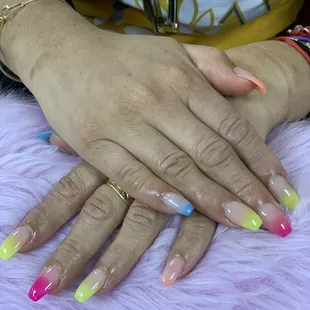 I called the salon and ask if they available for walk in. And yes. They do. Ann and Wendy are very friendly. I wait around 4-5 mins not bad for non appointment like me. Ann start put the tips and acrylic on my nails and then Wendy take over for file the nails and put gel color. It pretty nice and I like it. They not take too long for get it done either. I recommend