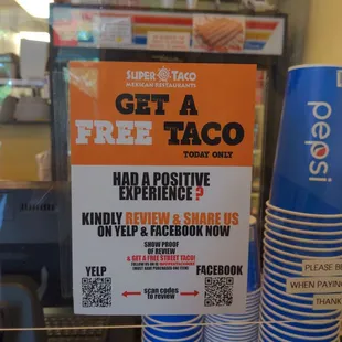 Very bad customer service and rude attitude on the young girl that works at night. I started coming here about 2 weeks ago bc they had good tacos and especially the super taco are delicious. So I came in about 3-4 times now the past 2 weeks. Everything was good until the last time I came in.I always ordered the super taco, and ask them to give me the sauce cups so I can get some to eat with my taco, never had a problem until last time I was there. You know tacos is only good when you eat with a lot of sauces and they have 4 different types of buckets of sauces. I wanted to try all four and maybe more, I ask the girl for 6 cups to put my sauces in to bring home, she gave me an attitude and said we only give 2. Seriously? There are 4 buckets of sauces at the bar, how can I get all 4 to try if you only give me 2? Never had I had this problem. The young girl was super rude. If I were to sit in and eat, I can just eat a lot of sauce so what is the big deal??? (Super taco is about 3 of those small tacos, so obviously I will need more than 2 cups of sauces)! My to-go taco place now turn into a bad place to come bc of this incident. I will never come back and will tell all my friends/family about this place. 1 bad experience kills it all. Hope the owner reads this and tells his workers not to be cheap on the sauce. Like I said, I came bc the tacos are good but only with a lot of sauces. Not good for business!Note: I have never had this problems at any taco place I've been too. They even leave the cups outside for you to take as much sauce as you like bc they know eating tacos and burritos with a lot of sauces makes the food taste better!