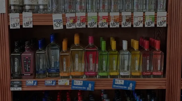 a shelf full of liquor