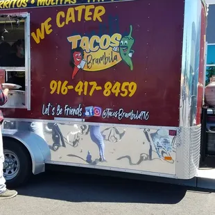 Tacos Brambila Catering taco truck provided company luncheon at my worksite today, (Taco Trailer Style rather than Taquiza Table Style or Buffet). Taco Fiesta themed albeit the day after Cinco de Mayo. Unfortunately, we could not choose from the entire menu available (crispy birria tacos, nachos, burritos, quesadillas, mulitas, tortas) but what I did get to try was a 3 street taco combo plate with Mexican rice and refried beans, specifically a "sampler" trio which had double corn tortillas and one of each taco meat: chicken, steak, and pork, everything on it (onions, cilantro, salsa), side of chips and salsa too. The green homemade salsa sure had quite a kick to it! I wasn't asked to specify if I wanted mild, red, or green. The al pastor was so flavorful, the crispy grilled chicken was on point, and the steak/asada was pretty good as well. Veggie upon request, utensils/plates/napkins provided. Would've been cool if carnitas, lengua, quesa or the other specialty tacos were options for this catering (I didn't consider making out-of-pocket purchases), but I understand limiting the menu to get orders out faster. I may suggest an add-on of churros or Mexican soft drinks next time. The truck was onsite about 2-2.5 hours, although I can't comment on the cost per person to hire the truck. Follow them at @TacosBrambila916 on IG or FB.