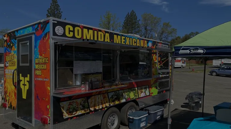 a taco truck parked in a parking lot