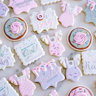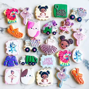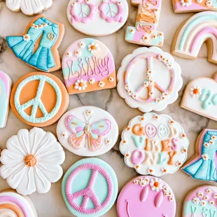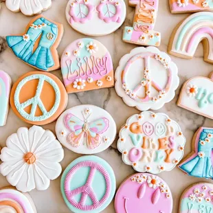 a variety of decorated cookies