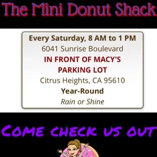 The best doughnuts in Sacramento! My kids absolutely loved them ! Thank you mini doughnut shack ! Seen them in plumas lake would highly recommend