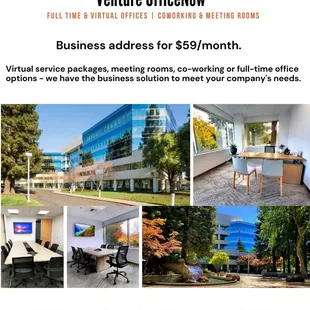 Venture OfficeNow is a beautiful facility. I have had the pleasure of hosting a handful of meeting at the site, and the staff has been a pleasure. I also had the opportunity to talk with the owner at a few Chamber of Commerce events, her knowledge and professionalism have sold me this model of doing business.