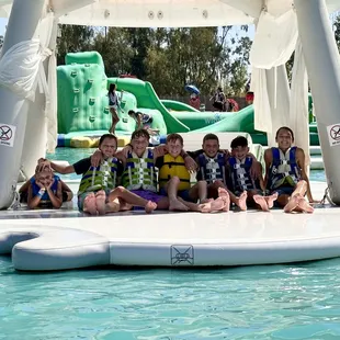 Went again with friends & had the best day! We were there from open to close! Older kids (age 7 and up) were big enough for all the activities (aqua park, ninja course, zip line, hamster wheel) but our younger son (age 4) wasn't. It's ok cuz he had so much fun hanging back w/mama eating or playing with building blocks at the table under our big cabana when we wanted a break in the shade. We also made an epic sand castle village (when he wasn't swimming around from beach to floating cabana or floating bench) so it was still a great time for him.Definitely going back again!