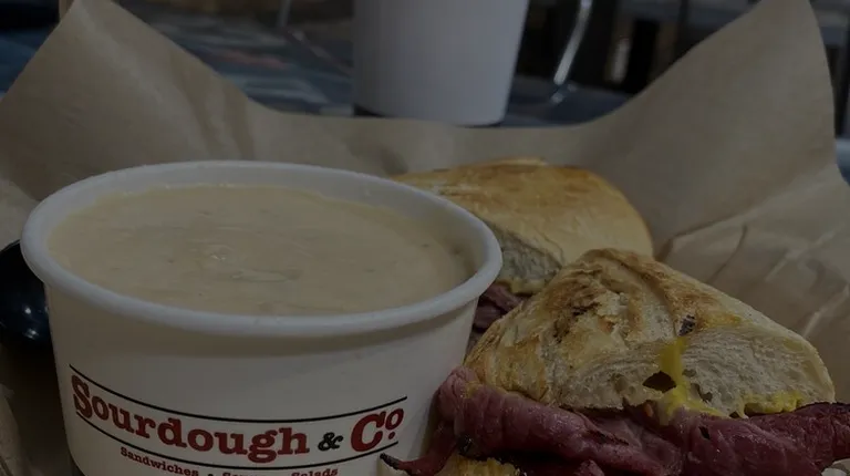 New England Clam Chowder 7 days a week is a nice choice, they even have the sourdough bread bowl option of course! They do have other daily soups too if the chowder's not your thing. Located in between the Golden 1 Credit Union and the Five Guys in the same parking lot where the Taco Bell and In-N-Out are as well. We've ordered lunch from here (catered for the whole site) and regular pick-up/to-go orders for the smaller team/group.You might think they only do sourdough bread, but you can also choose honey wheat, marble rye, or gluten-free wrap. Not sure how they exactly translate to the equivalent 4", 6" or 8" sandwiches when it comes to the sliced rye bread though. For catering we do variety sandwich platters (choose from ham, turkey, roast beef, cracked pepper turkey, garlic pesto turkey, or veggie), gourmet salads (Grilled Chicken Caesar, Southwest Chicken, Cobb, Greek, or Italian), sometimes soups (clam chowder daily, chicken & poblano pepper, creamy tomato, cream of potato, fire-roasted vegetable, chili, broccoli & cheese on rotation). Each platter has 12 servings and soups come in 8oz cups. You can also do chips, or assorted cookies too.I haven't tried any of their specialty sandwiches such as the French Dip, Smoked Brisket, or Caprese. I do typically go for the #2 Roast Beef, #6 Pastrami, #7 Pastrami Reuben, or #14 Italian. I hear the Garlic Pesto Turkey is also good. You can also Make it a Meal by adding chips, soup of the day, salad, chili, or mac & cheese which also includes a 21oz fountain drink. Haven't had bad service here; for instance, yesterday's pickup order for 5 people was placed around 12:20PM and ready in 30 minutes. Hot sandwiches and soups were still warm and nothing incorrect/missing. Overall a good convenient lunch option for this side of West Sac.