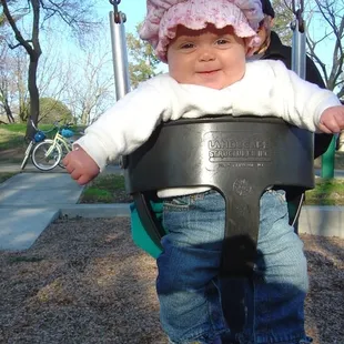 Swing area with two baby seats and two regular swings