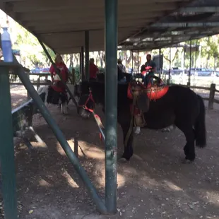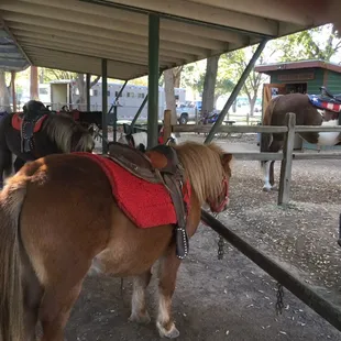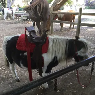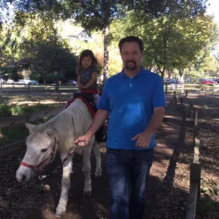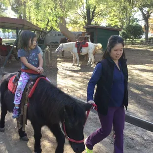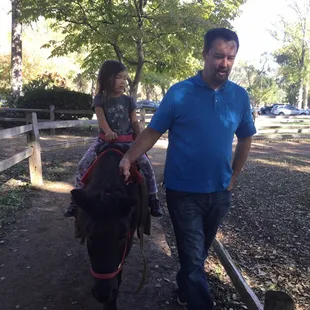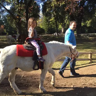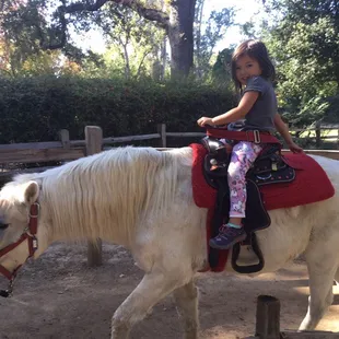 I am trying to review the PONY RIDES at William Land Park, located near Funderland and close to FairyTale Land and the Zoo. These are PONY RIDES in which parent leads the kid on the horse around a small gated circular path. This is a little different and much better than the county fair rides because it's a little more free for the horse and you as the parent get to be involved instead of just watching on the sidelines. You get your choice of medium or big horse. If your kid weighs less than 35 lobs, your kid can ride the mini horse. Cost was $5/per ride or 3 for $12 so of course we did the latter. We ended up with "Chocolate chip" a medium sized brown horse with really soft mane and "Snowball" a larger white horse.Not crowded on a Sun afternoon. Would definitely recommend.