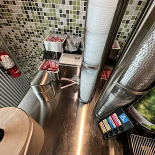 the counter area of a fast food restaurant