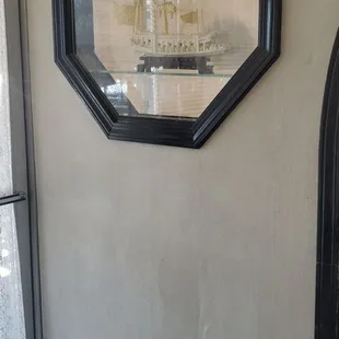 Food is great big portions but dirty dusty chairs & furniture wallpaper thing's on the table salt pepper not clean very unpleasant old bathroom! No music