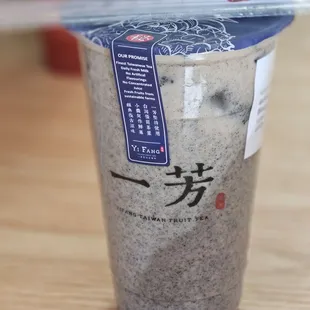 Hubs always drive passes by this plaza where I see a big signage Yi Fang. I never had Yi Fang's milk tea & was eager to get one today after a year of waiting. Inside the store. Is a small cute area. The waiting area has a screen with your order # & name. The drink menu has an exceptional lists of popular drinks ranging from teas, fruit teas, milk teas, yakults, etc. Cashier is very nice & informative. Very helpful & polite. I got myself brown sugar pearl matcha latte. I made my lil girl ordered her own customized drink with her choice of sweetness, ice level, and topping. She got herself taro latte. The drinks came out fast. Young lady who made our drinks told us to shake our drinks before drinking it. I can feel the warm boba as I was holding my drink. That moment I can tell that the bobas were just made. Sweet & chewy. My overall experience is wonderful. Great staff & good drinks. I would return again if I am near the area.