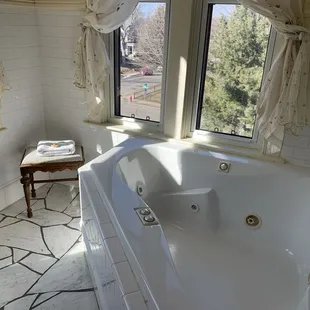 Our time was wonderful at the Ann Bean B&B. We stayed in the "Solarium" room and it was beyond beautiful. Beware if you can't do stairs, this one is on floor 3. The tub in this room is what sold us. It filled from the ceiling and soaking in it was a perfect way to relax. It was a wow factor. The jetted shower was also top notch. Amazing room!The bedding was comfortable and high quality. And they provided all amenities in the room. (Fan, shampoo/conditioner/body wash, mini fridge and even a tv if you want). The only downfall was when sleeping with the windows open... the neighbor is outside in the backyard with their dog and they were rather noisy. If windows are closed... perfect!We requested a cheese basket for the room and it was perfect. There was a ton in it and we felt the value was great. Two small blocks of cheese, fruit, box or organic crackers and 3 bars of chocolate. Breakfast was nice and they accommodated to my non meat requests. The berry scone with lemon curd was my favorite. Yums!Thanks again for a magnificent time!