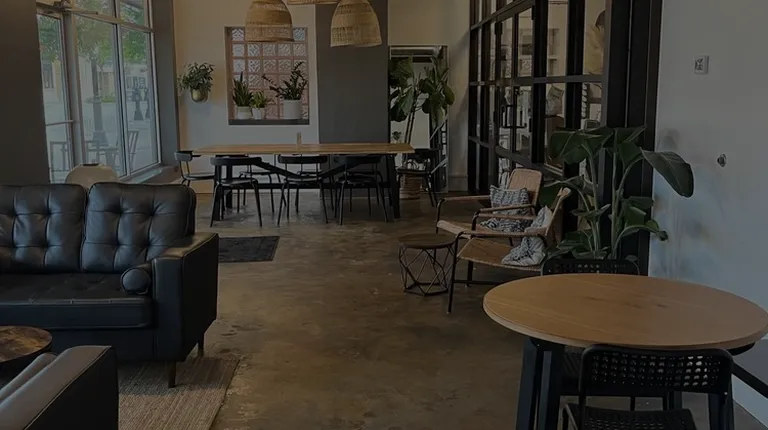 Looking towards coffee bar from seating space along front of another business.