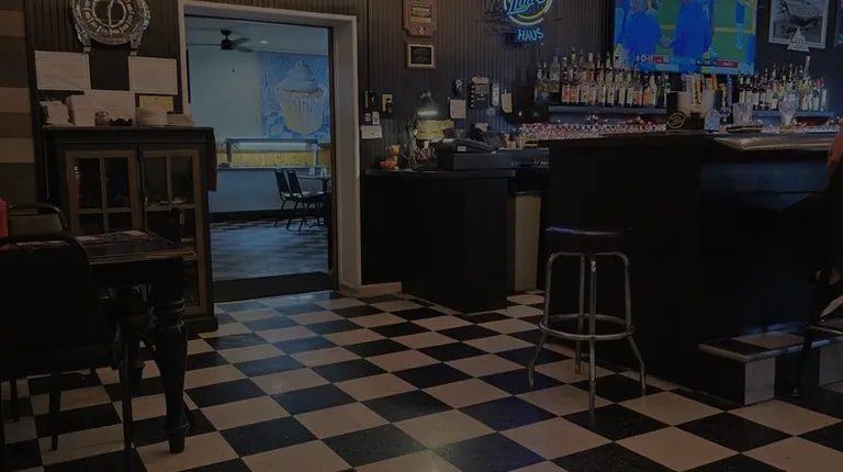 a bar with a checkered floor