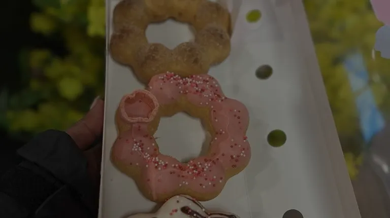 Mochi donuts - Toro (purple), Black Sesame (black), Cookies n Cream (white), strawberry (pink), Matcha (green)