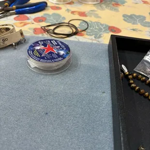 I just had 2 beaded bracelets repaired at the Beadhive. It took a little over a week for the work to be completed, which was the time frame I was told at drop off. I am VERY pleased with the quality of the repairs. Both bracelets look great and they were returned to me sparkling, which was great improvement to the state they were dropped off in!I plan to go back at a later date for some bead shopping. Seems to be a cute shop with some interesting bead choices.