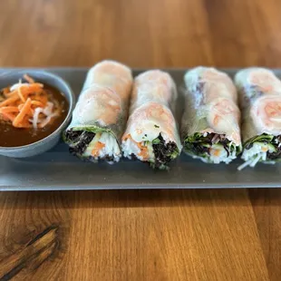 Cute atmosphere. Lots of staff, not a lot of patrons. Lots of open space. Friendly staff. Food probably isn't for me. The ingredients were fresh but it didn't quite meet what I was hoping for. The pudding was nice but with both mung bean and red beans, there was too much bean starch going on. Would love some mint in the spring roll to hep being more flavor to the party.