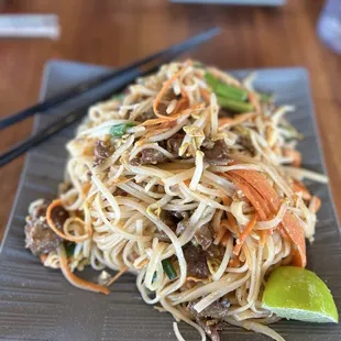 I've never had a bahn mi with so much meat! It was so good and the bread must be baked fresh onsite. The pad thai was ok but the noodles were dry and stuck together a lot. I added lime juice, soy sauce and sirracha to give it more flavor and loosen the noodles up. I opted for NO crushed peanuts on top. The portion was huge for 1 person! The egg rolls were good and I liked the dipping sauce but wish it were a little thicker. The shrimp spring rolls were the best we've had here in the surrounding area. It had a good portion of plump shrimp inside. Service was really good. Lots of parking and easy to get to.