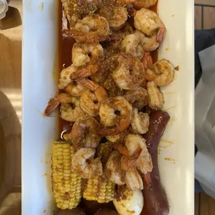 Crab, shrimp, sausage, corn, potatoes, and the best sauce ever. Pure deliciousness!!!