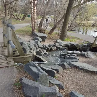 This is a great park for young and old! Walking trails and two separate playgrounds. Added bonus is the vintage rocket slide. We've been there a few times and have seen muskrats swimming and eating.