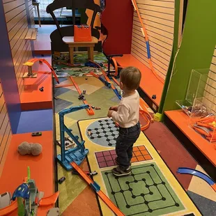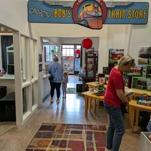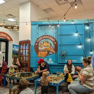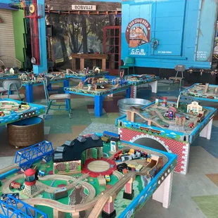 Choo Choo Bob's is the place to be if you are a kid (or parent of a kid) who loves trains!They have a place space for kids (geared towards ages 1-6) for $5/kid that includes lots of train tables, Hotwheels cars and tracks, etc... My 2 year old was entertained for over 2 hours and didn't want to leave.They also have story time at approximately 10:30am, but I'm not sure if that is daily or on the weekends only.There is a retail portion to the store with trains and toys for sale, and they have cheap soda, snacks, and water for sale too. They also have a birthday party room in the back.The staff could not have been more kind or enthusiastic - they really seemed to be enjoying their jobs!We will be back soon!
